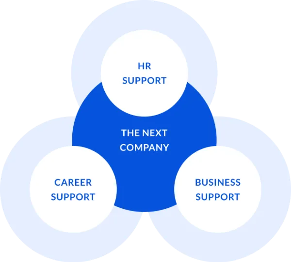 私たちは、組織・⼈事支援・採用支援・新規事業支援の事業を軸に幅広い事業を展開していきます。